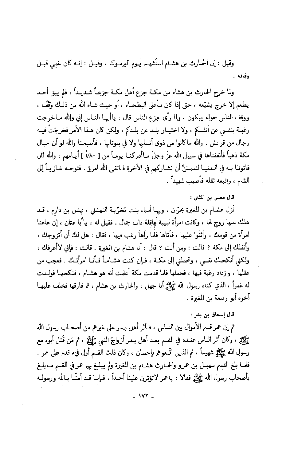 وقيل: إن الحارث بن هشام استشهد يوم اليرموك، وقيل: إنه كان عمي قبل وفاته.