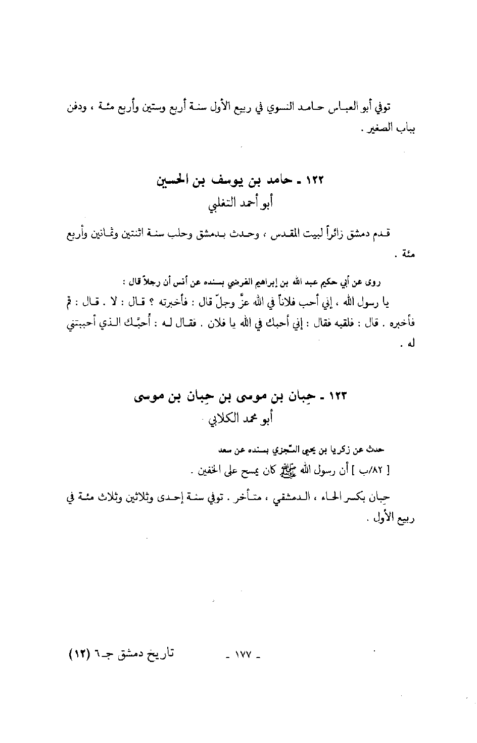 حبان بكسر الحاء، الدمشقي، متأخر. توفي سنة إحدى وثلاثين وثلاث مائة في ربيع الأول.