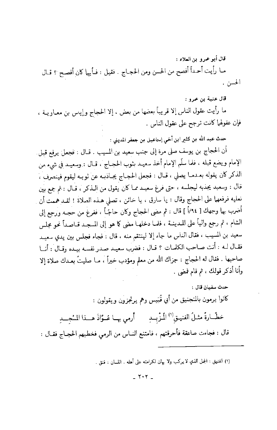 قال أبو عمرو بن العلاء: ما رأيت أحداً أفصح من الحسن ومن الحجاج. فقيل: فأيهما كان أفصح؟ قال: الحسن.