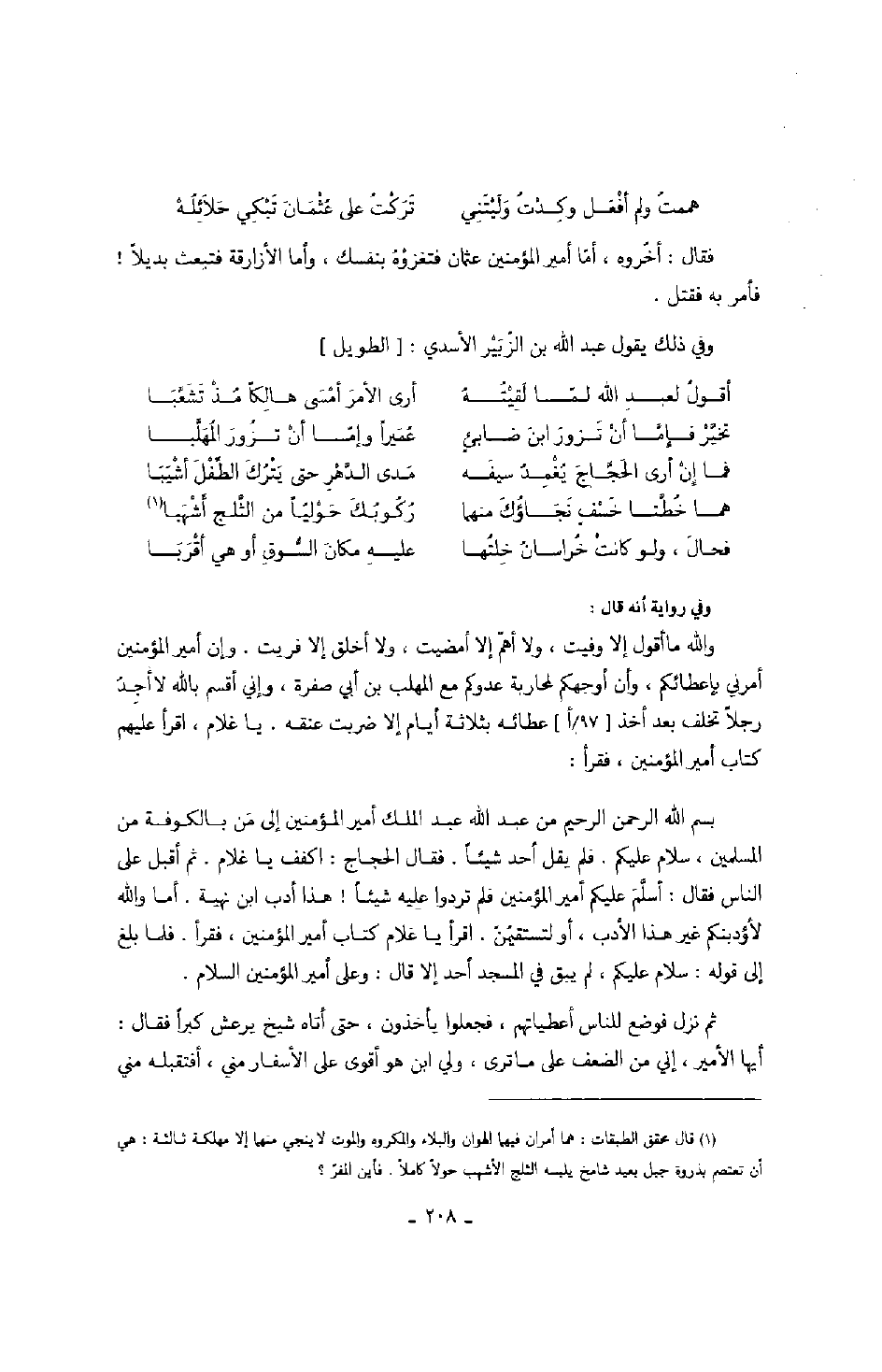 وفي ذلك يقول عبد الله بن الزبير الأسدي: