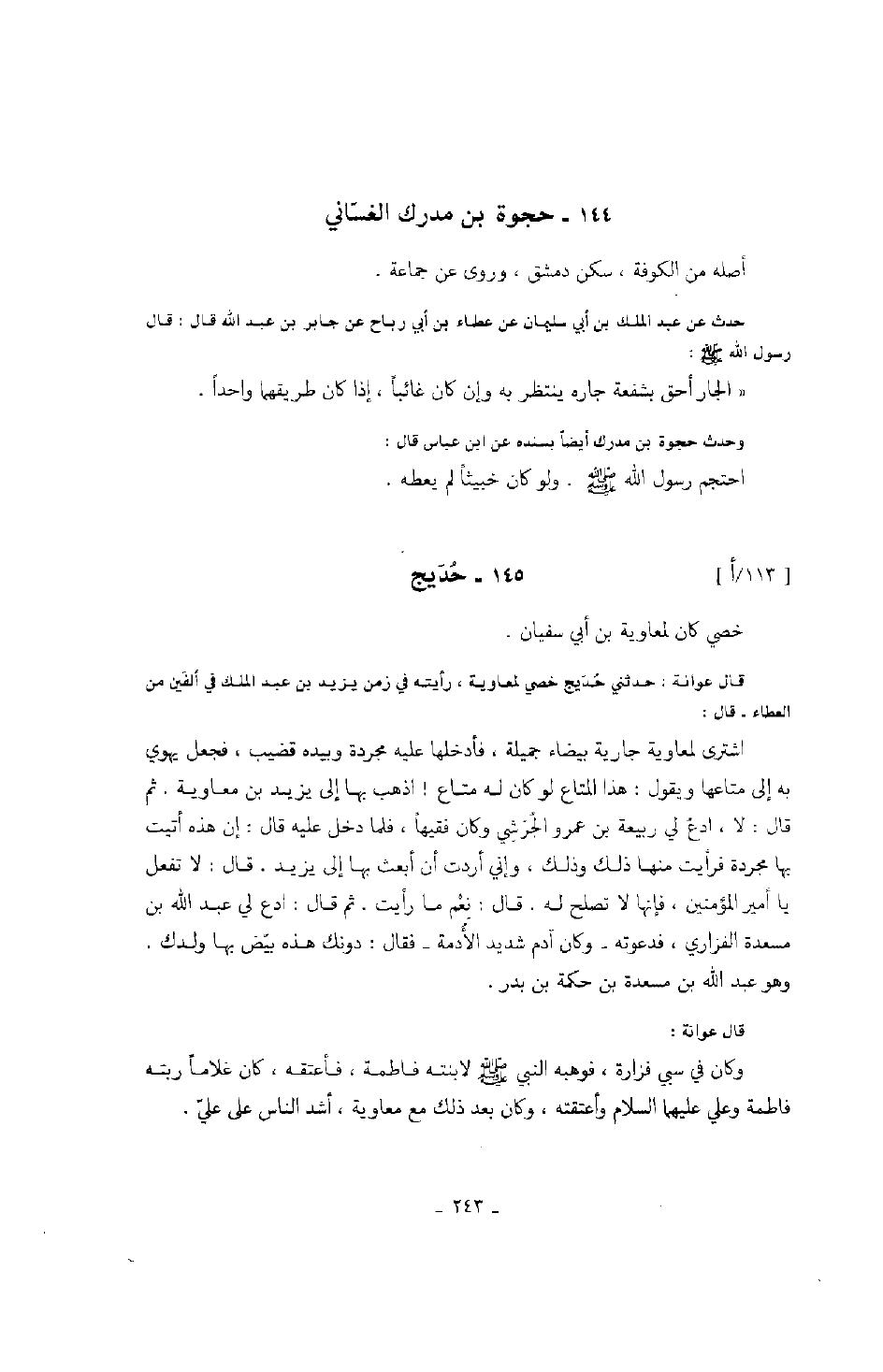 وحدث حجوة بن مدرك أيضاً بسنده عن ابن عباس قال: احتجم رسول الله صَلَّى اللهُ عَلَيْهِ وَسَلَّمَ. ولو كان خبيثاً لم يعطه.