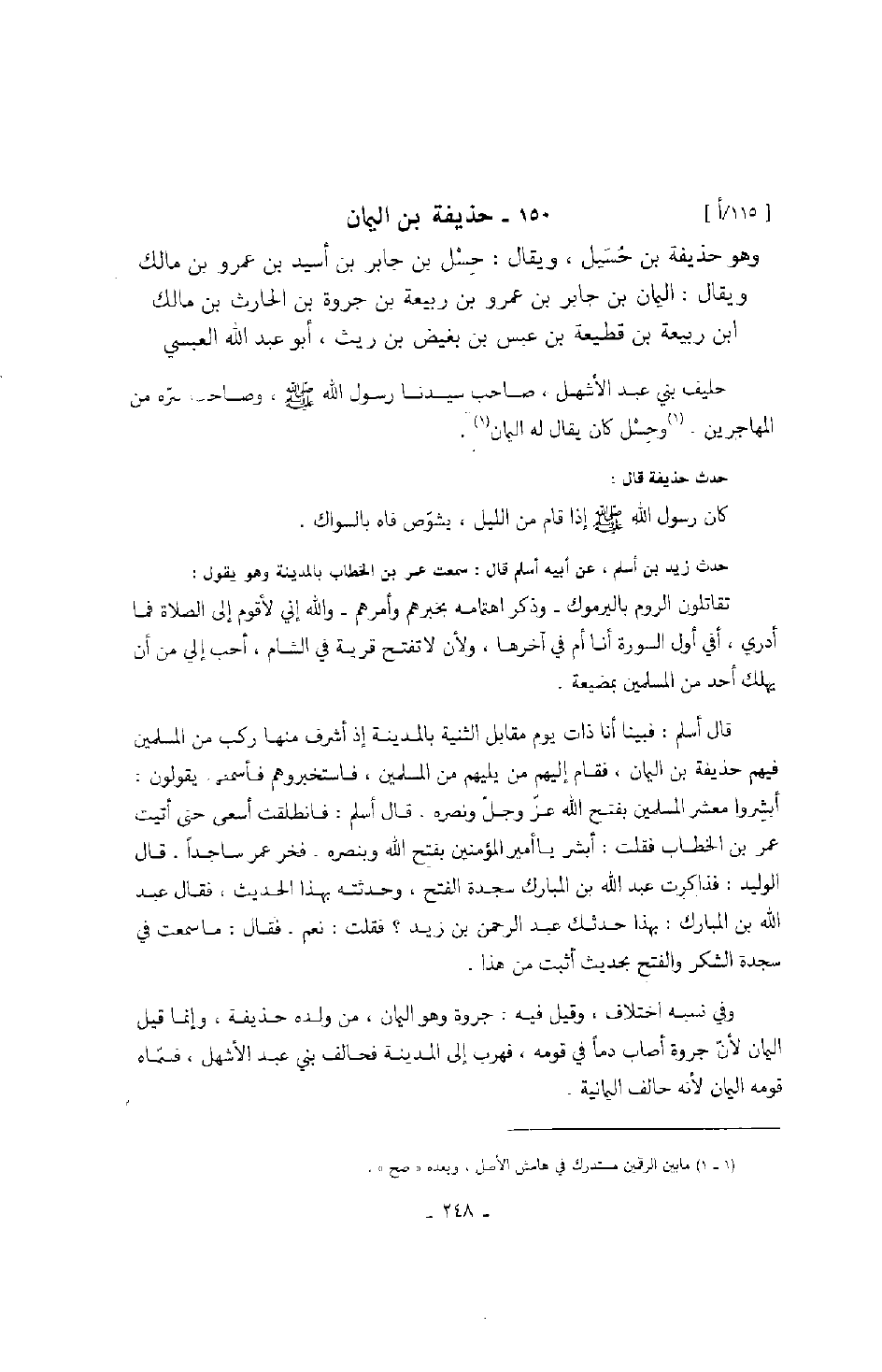 وهو حذيفة بن حسيل، ويقال: حسل بن جابر بن أسيد بن عمرو بن مالك ويقال: اليمان بن جابر بن عمرو بن ربيعة بن جروة بن الحارث بن مالك بن ربيعة بن قطيعة بن عبس بن بغيض بن ريث، أبو عبد الله العبسي حليف بني عبد الأشهل، صاحب سيدنا رسول الله صَلَّى اللهُ عَلَيْهِ وَسَلَّمَ، وصاحب سره من المهاجرين. وحسل كان يقال له اليمان.