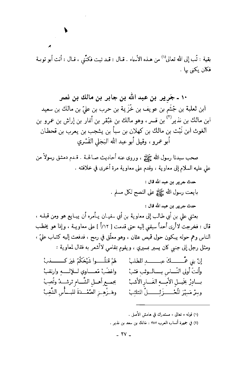 حدث جرير بن عبد الله قال: بايعت رسول صَلَّى اللهُ عَلَيْهِ وَسَلَّمَ على النصح لكل مسلم.