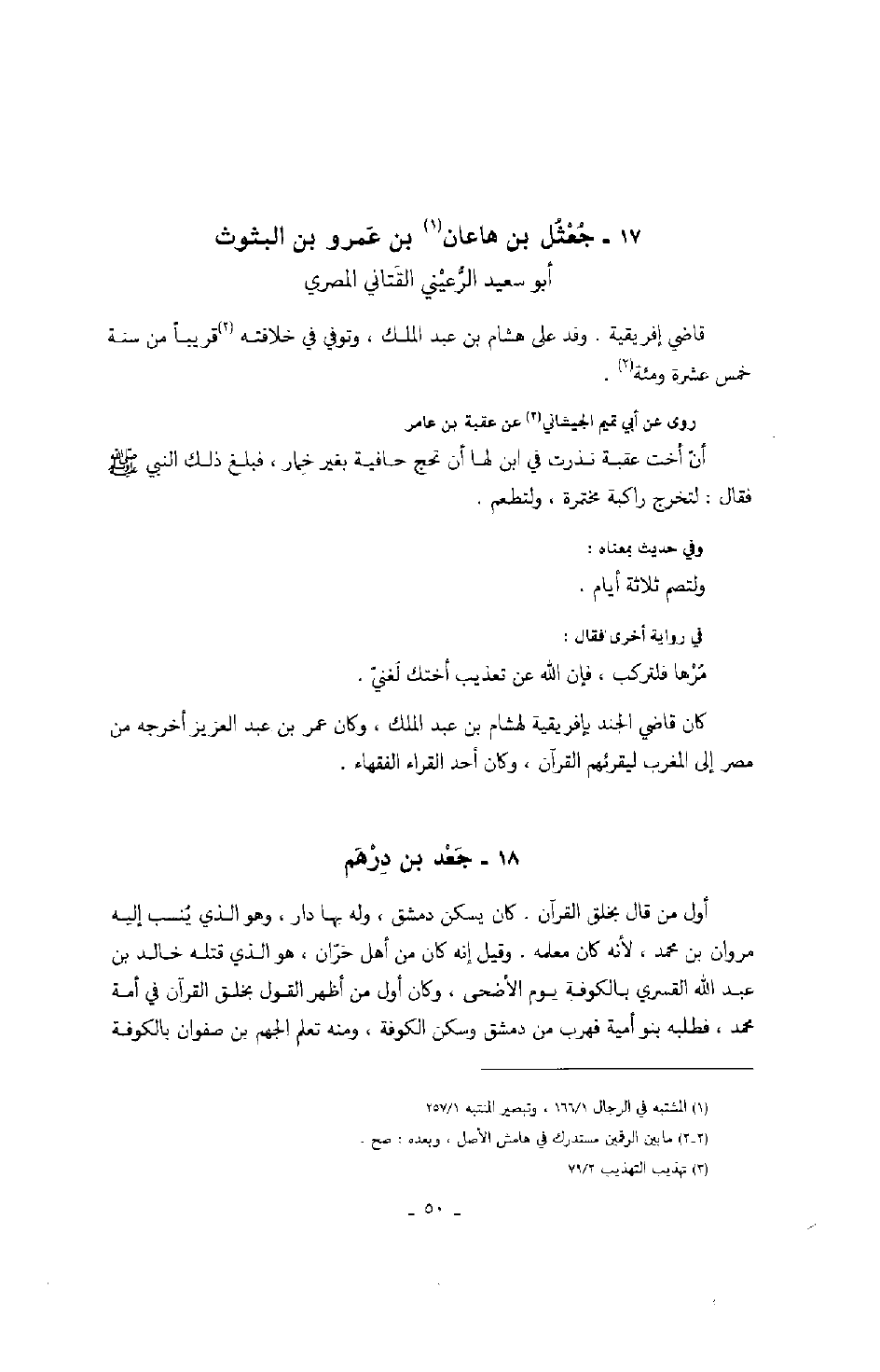 أول من قال بخلق القرآن. كان يسكن دمشق، وله بها دار، وهو الذي ينسب إليه مروان بن محمد، لأنه كان معلمه. وقيل إنه كان من أهل حران، هو الذي قتله خالد بن عبد الله القسري بالكوفة يوم الأضحى، وكان أول من أظهر القول بخلق القرآن في أمة محمد، فطلبه بن أمية فهرب من دمشق وسكن الكوفة، ومنه تعلم الجهم بن صفوان بالكوفة