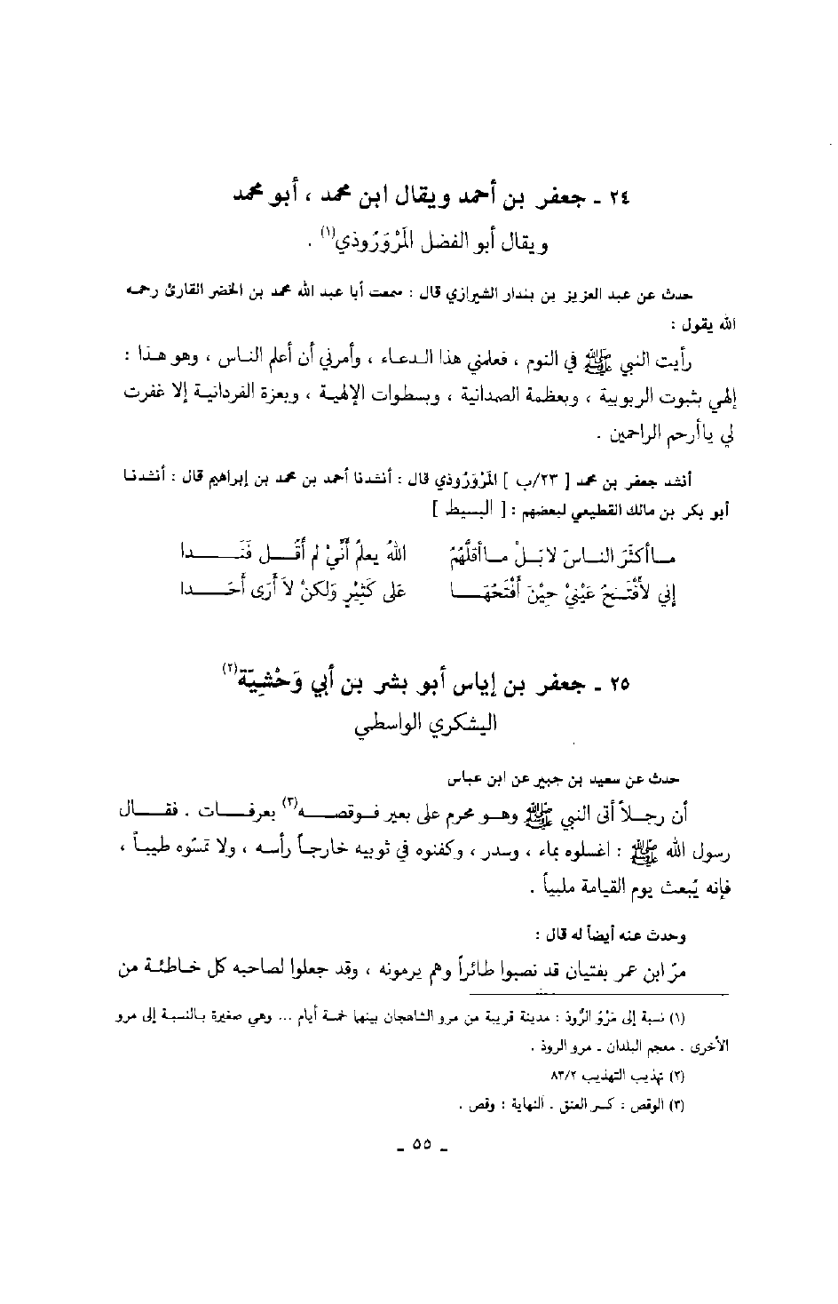 أنشد جعفر بن محمد المروروذي قال: أنشدنا أحمد بن محمد بن ابراهيم قال: أنشدنا أبو بكر بن مالك القطيعي لبعضهم: