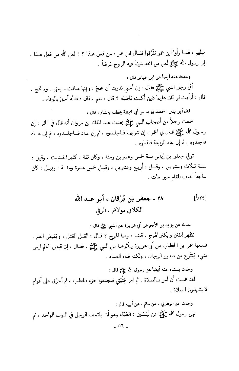 حدث عن يزيد بن الأصم عن أبي هريرة عن النبي صَلَّى اللهُ عَلَيْهِ وَسَلَّمَ قال: تظهر الفتن ويكثر الهرج. قلنا: وما الهرج؟ قال: القتل القتل، ويقبض العلم. فسمعها عمر بن الخطاب من أبي هريرة يأثرها عن النبي صَلَّى اللهُ عَلَيْهِ وَسَلَّمَ. فقال: إن قبض العلم ليس بشيء ينتزع من صدور الرجال، ولكنه فناء العلماء.