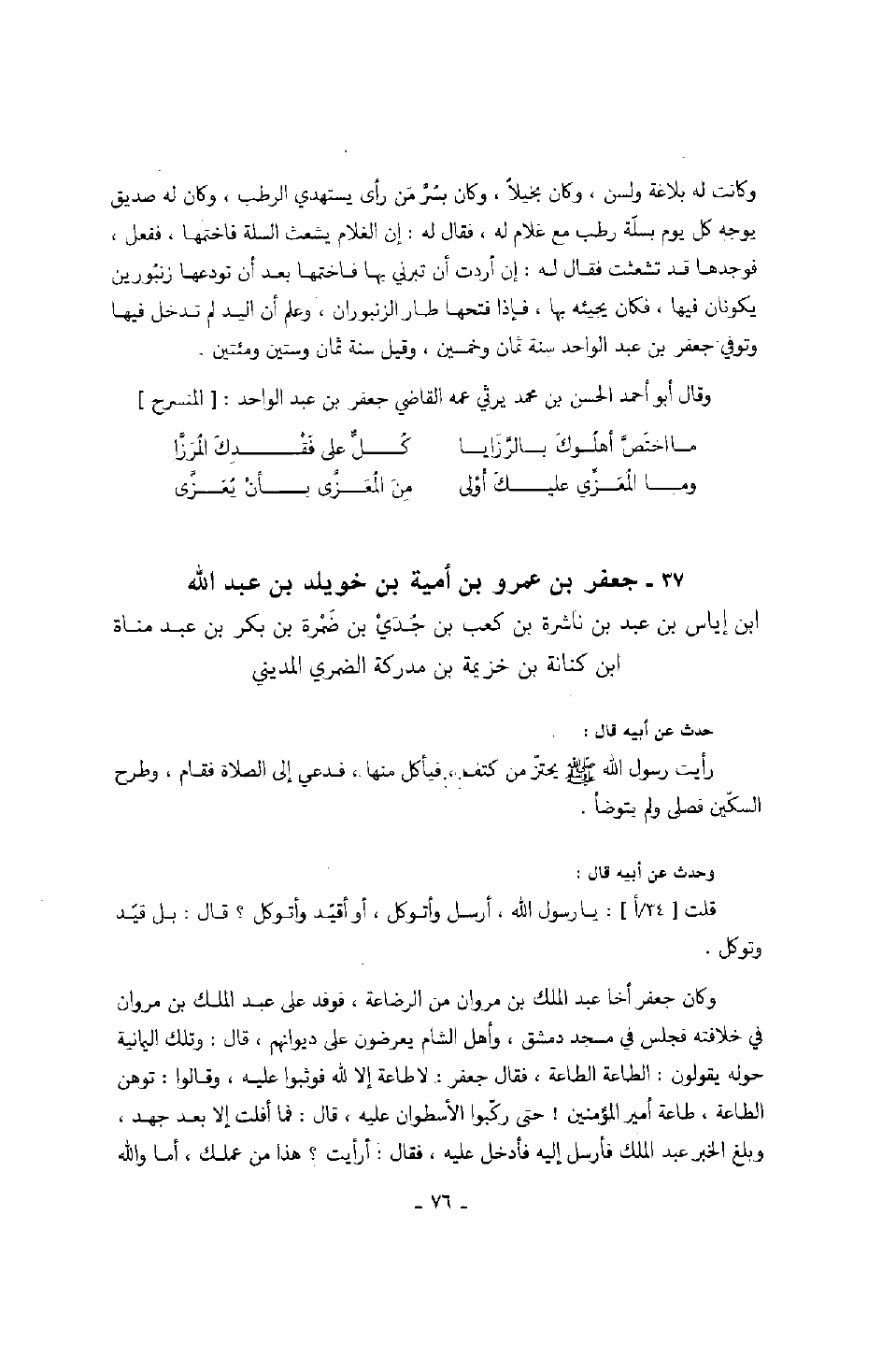 وقال أبو أحمد الحسن بن محمد يرثي عمه القاضي جعفر بن عبد الواحد: