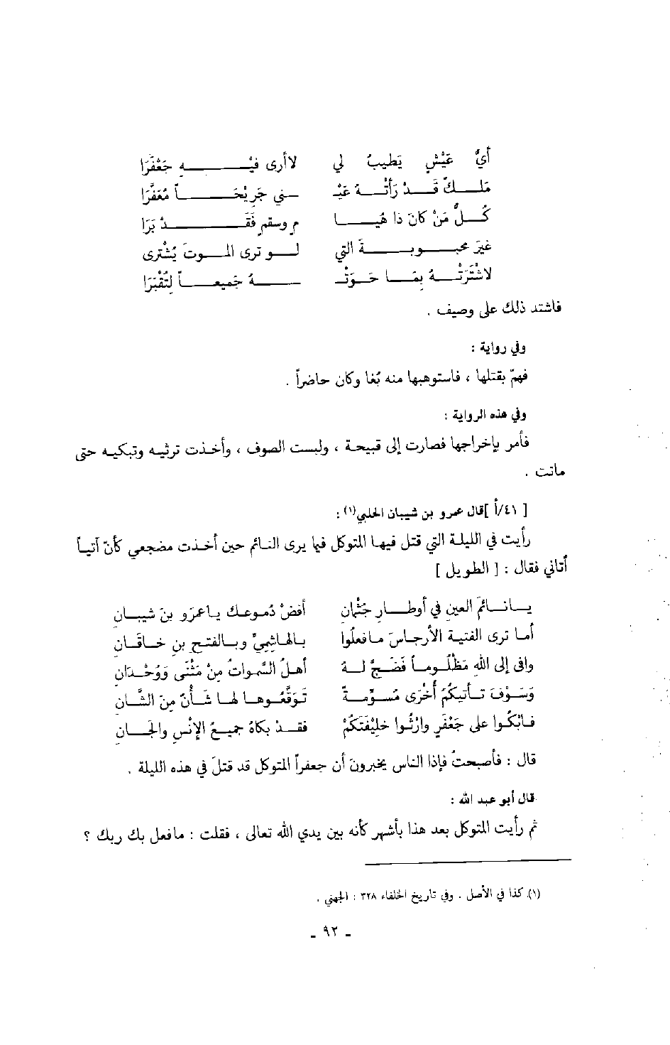 قال: فأصبحت فإذا الناس يخبرون أن جعفراً المتوكل قد قتل في هذه الليلة.