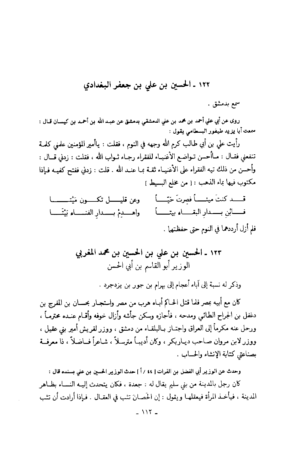 ابن محمد المغربي الوزير أبو القاسم بن أبي الحسن وذكر له نسبة إلى آباء أعجام إلى بهرام بن جور بن يزدجرد.