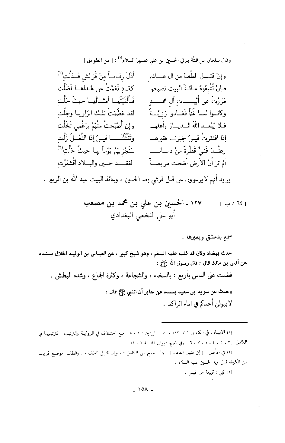 وقال سليمان بن قتة يرثي الحسين بن علي عليهما السلام: من الطويل