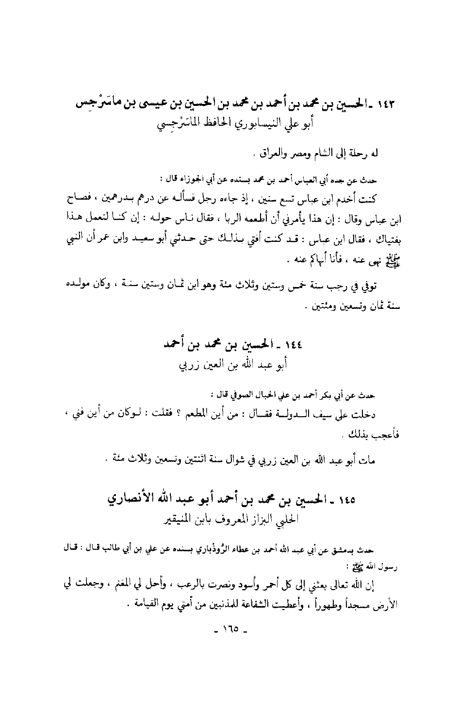 ابن الحسين بن عيسى بن ماسرجس أبو علي النيسابوري الحافظ الماسرجسي له رحلة إلى الشام ومصر والعراق.