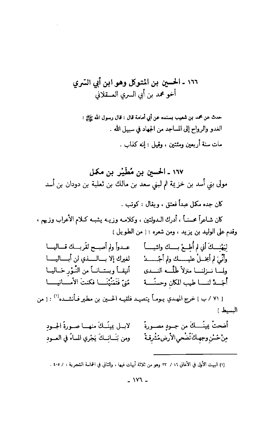 وهو ابن أبي السري أخو محمد بن أبي السري العسقلاني حدث عن محمد بن شعيب بسنده عن أبي أمامة قال: قال رسول الله صَلَّى اللهُ عَلَيْهِ وَسَلَّمَ: الغدو والرواح إلى المساجد من الجهاد في سبيل الله.