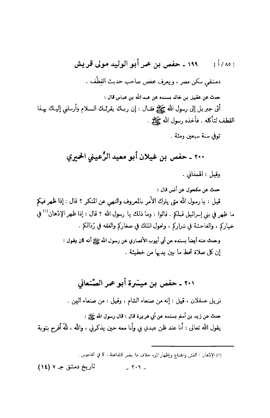 دمشقي سكن مصر، ويعرف بحفص صاحب حديث القطف.