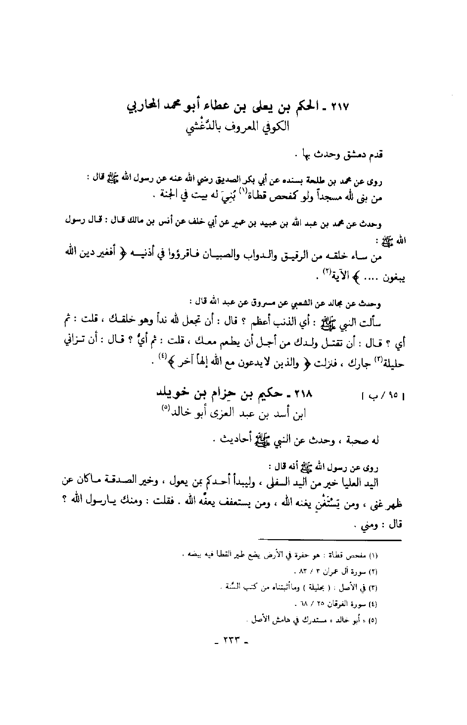 روى عن رسول الله صَلَّى اللهُ عَلَيْهِ وَسَلَّمَ أنه قال: اليد العليا خير من اليد السفلى، وليبدأ أحدكم بمن يعول، وخير الصدقة ما كان عن ظهر غنى، ومن يستغن يغنه الله، ومن يستعفف يعفه الله. فقلت: ومنك يا رسول الله؟ قال: ومني.