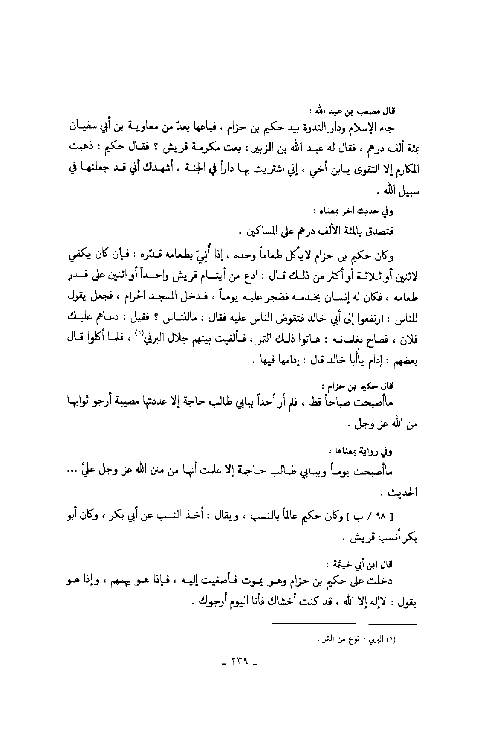 وكان حكيم عالماً بالنسب، ويقال: أخذ النسب عن أبي بكر، وكان أبو بكر أنسب قريش.