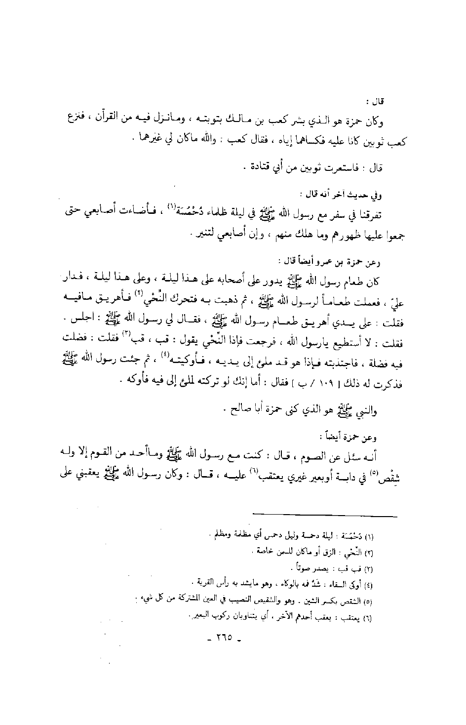 وعن حمزة أيضاً: أنه سئل عن الصوم، قال: كنت مع رسول الله صَلَّى اللهُ عَلَيْهِ وَسَلَّمَ وما أحد من القوم إلا وله شخص في دابة أو بعير غيري يعتقب عليه، قال: وكان رسول الله صَلَّى اللهُ عَلَيْهِ وَسَلَّمَ يعقبني على