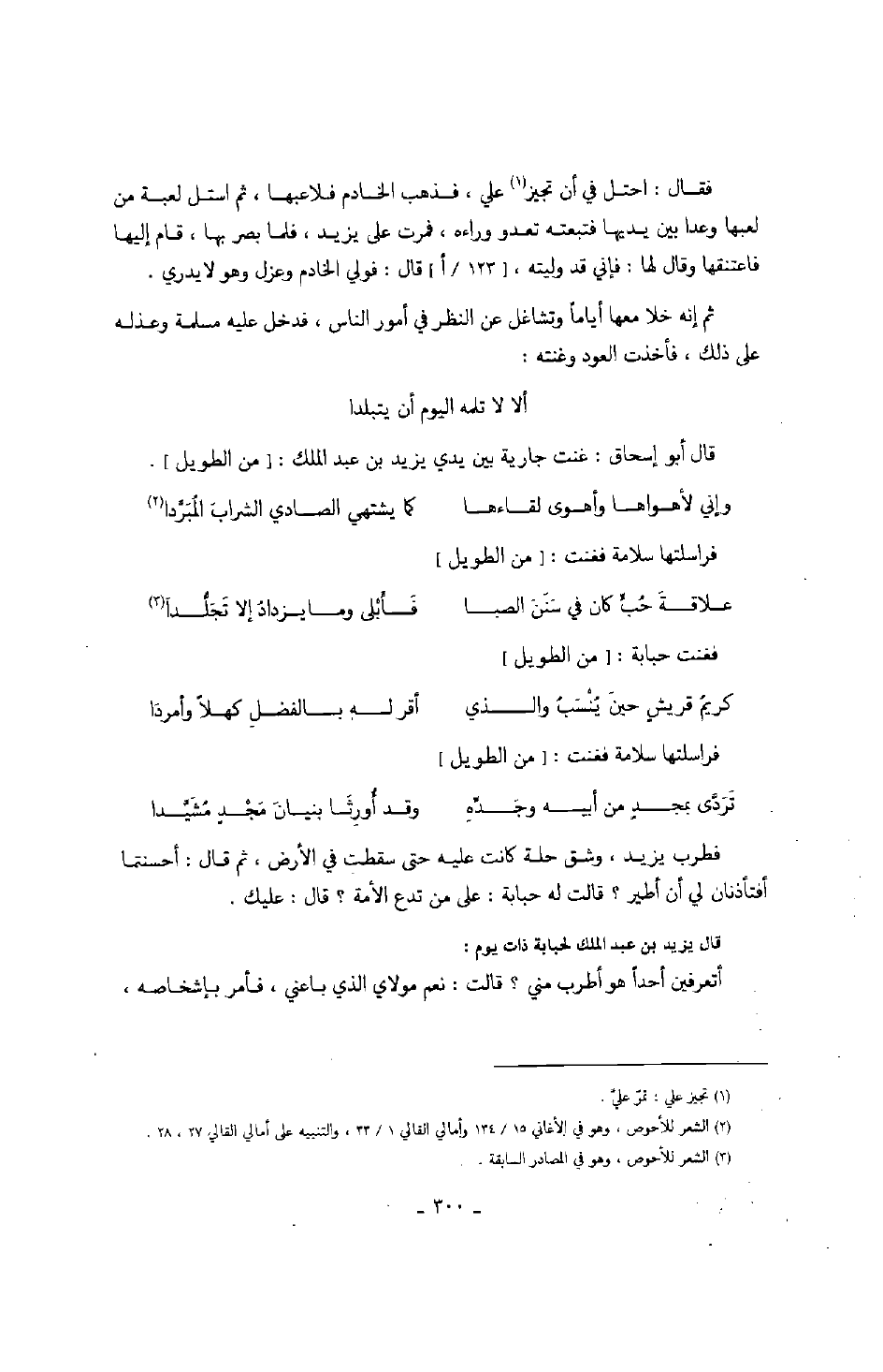 دخل يزيد بن عبد الملك يوماً بعد موت حبابة إلى خزانتها ومقاصيرها، فطاف فيها ومعه جارية من جواريها، فتمثلت الجارية من الطويل