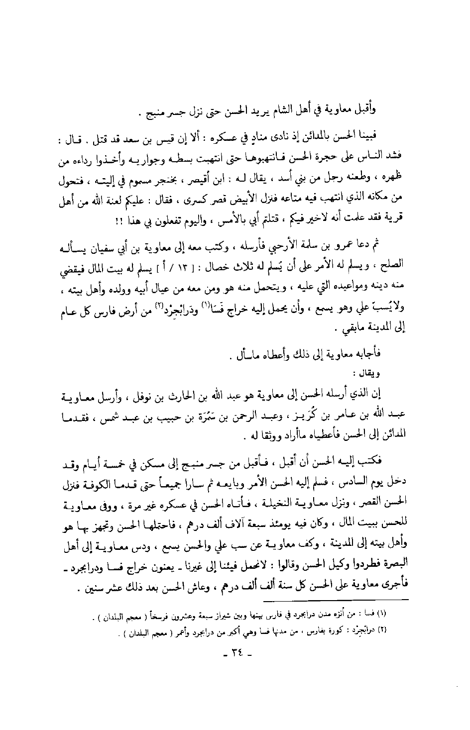 وأقبل معاوية في أهل الشام يريد الحسن حتى نزل جسر منبج.