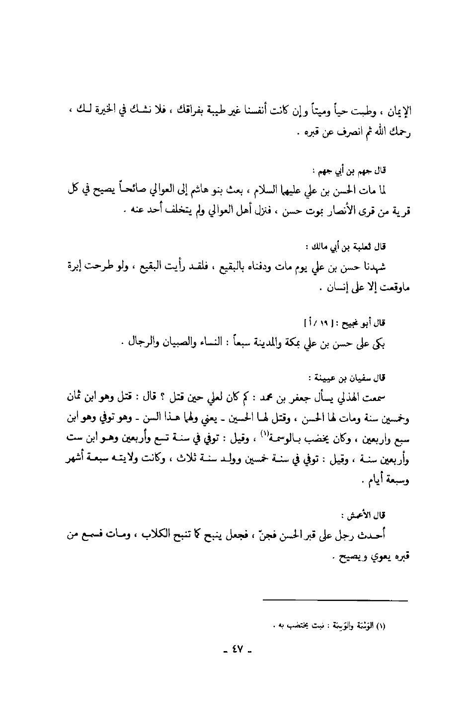 قال أبو نجيح: بكى على حسن بن علي بمكة والمدينة سبعاً: النساء والصبيان والرجال.