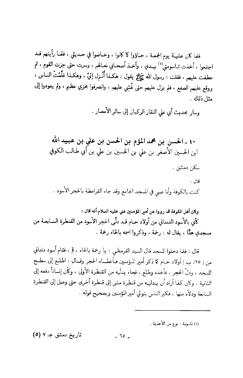 قال: كنت بالكوفة وأنا صبي في المسجد الجامع وقد جاء القرامطة بالحجر الأسود.