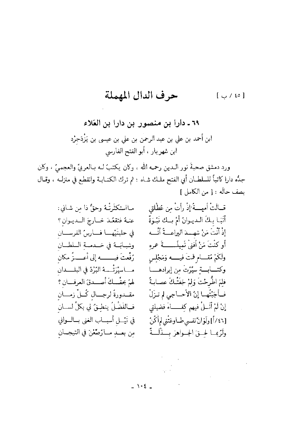 ابن أحمد بن علي بن عبد الرحمن بن علي بن عيسى بن يزدجرد بن شهريار، أبو الفتح الفارسي ورد دمشق صحبة نور الدين رحمه الله، وكان يكتب له بالعربي والعجمي، وكان جده دارا كاتباً للسلطان أبي الفتح ملك شاه؛ ثم ترك الكتابة وانقطع في منزله، وقال يصف حاله: