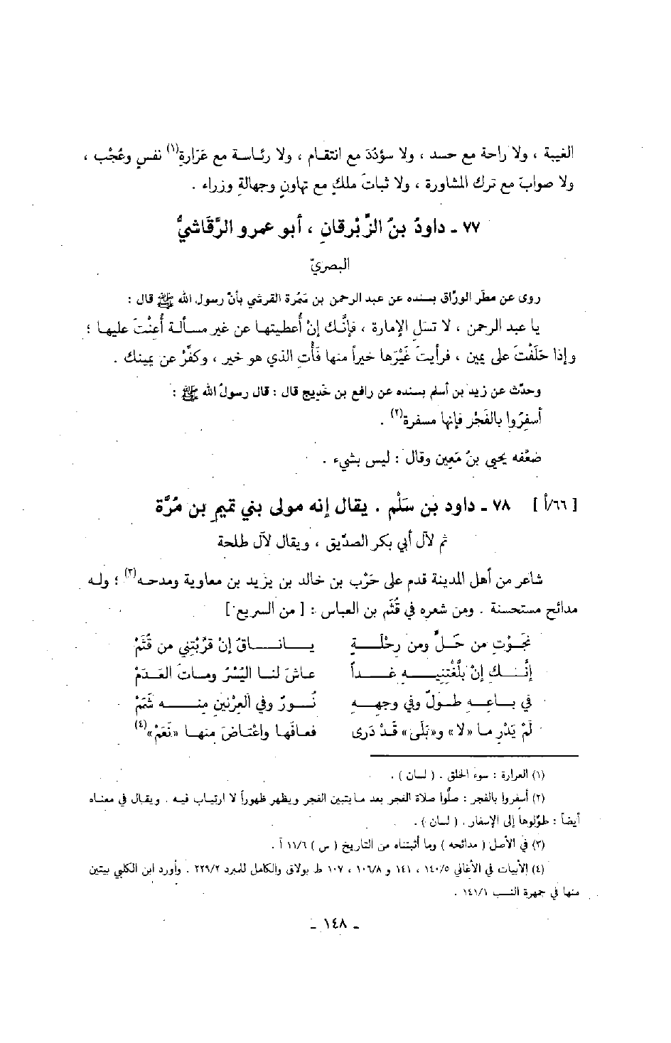 الرقاشي البصري روى عن مطر الوراق بسنده عن عبد الرحمن بن سمرة القرشي بأن رسول الله صَلَّى اللهُ عَلَيْهِ وَسَلَّمَ قال: يا عبد الرحمن، لا تسل الإمارة، فإنك إن أعطيتها عن غير مسألة أعنت عليها؛ وإذا حلفت على يمين، فرأيت غيرها خيراً منها فأت الذي هو خير، وكفر عن يمينك.