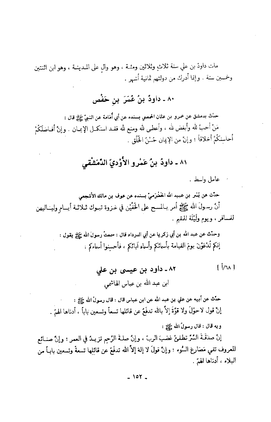 عامل واسط حدث عن بسر بن عبيد الله الحضرمي بسنده عن عوف بن مالك الأشجعي أن رسول الله صَلَّى اللهُ عَلَيْهِ وَسَلَّمَ أمر بالمسح على الخفين في غزوة تبوك ثلاثة أيام ولياليهن للمسافر، ويوم وليلة للمقيم.