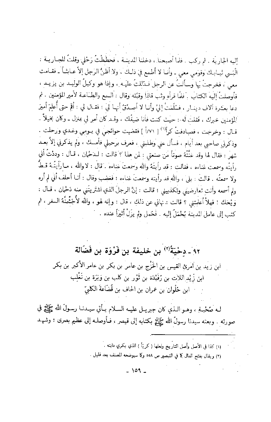 ابن زيد بن امرئ القيس بن الخرج بن عامر بن بكر بن عامر الأكبر بن بكر بن زيد اللات بن رفيدة بن ثور بن كلب بن وبرة بن تغلب بن حلوان بن عمران بن الحاف بن قضاعة الكلبي له صحبة، وهو الذي كان جبريل عليه السلام يأتي سيدنا رسول الله صَلَّى اللهُ عَلَيْهِ وَسَلَّمَ في صورته. وبعثه سيدنا رسول الله صَلَّى اللهُ عَلَيْهِ وَسَلَّمَ بكتابه إلى قيصر، فأوصله إلى عظيم بصرى؛ وشهد