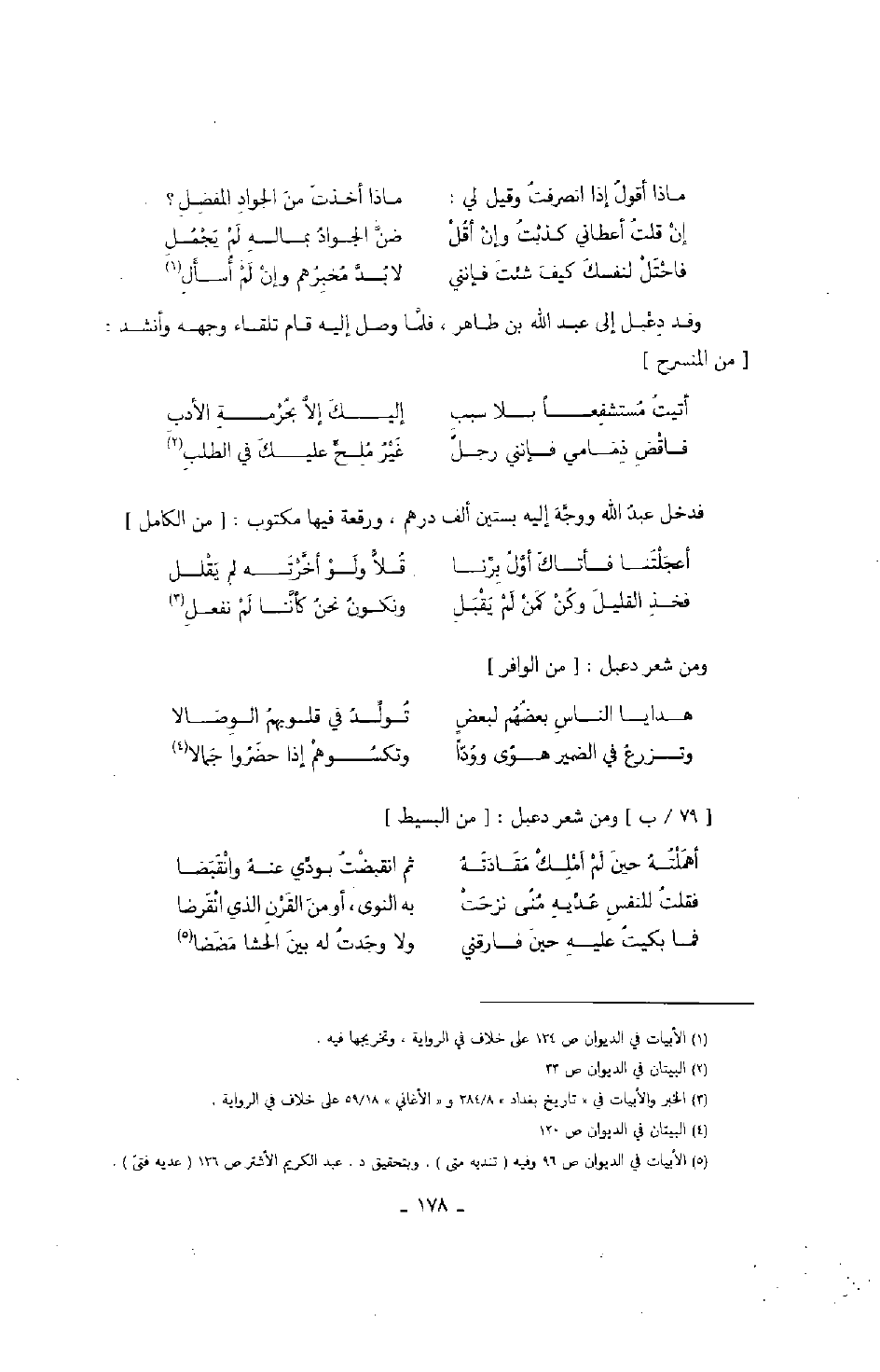 وفد دعبل إلى عبد الله بن طاهر، فلما وصل إليه قام تلقاء وجهه وأنشد: