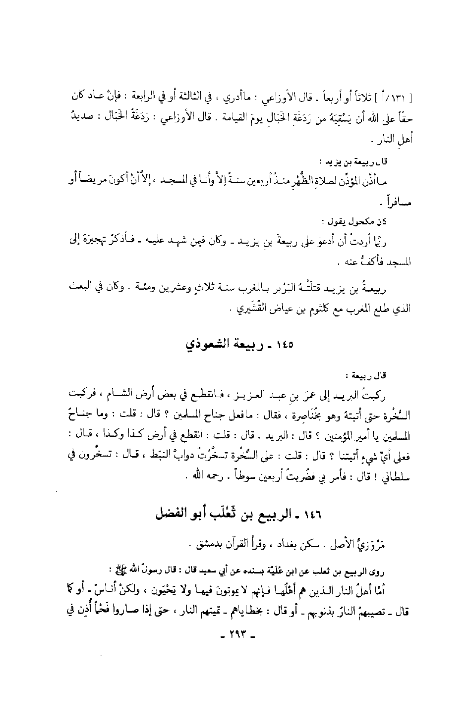قال ربيعة بن يزيد: ما أذن المؤذن لصلاة الظهر منذ أربعين سنةً إلا وأنا في المسجد، إلا أن أكون مريضاً أو مسافراً.