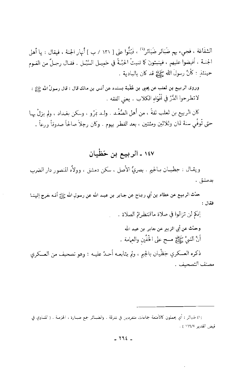 ويقال: جظيان بالجيم. بصري الأصل، سكن دمشق، وولاه المنصور دار الضرب بدمشق حدث الربيع عن عطاء بن أبي رباح عن جابر بن عبد الله عن رسول الله صَلَّى اللهُ عَلَيْهِ وَسَلَّمَ أنه خرج إلينا فقال: " إنكم لن تزالوا في صلاة ما انتظرتم الصلاة " وحدث عن أبي الزبير عن جابر بن عبد الله أن النبي صَلَّى اللهُ عَلَيْهِ وَسَلَّمَ مسح على الخفين والعمامة.