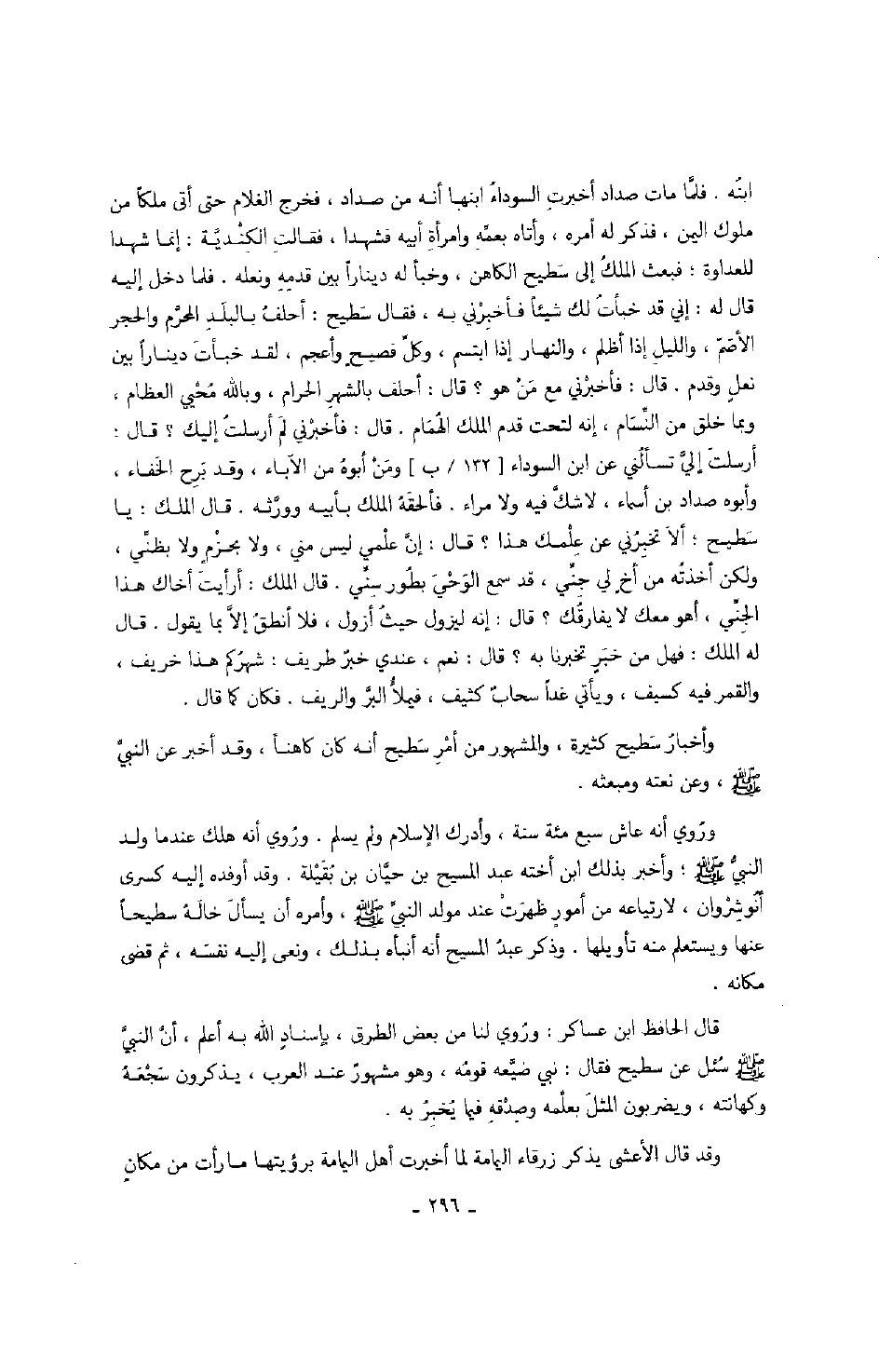 وأخبار سطيح كثيرة، والمشهور من أمر سطيح أنه كان كاهناً، وقد أخبر عن النبي صَلَّى اللهُ عَلَيْهِ وَسَلَّمَ، وعن نعته ومبعثه.