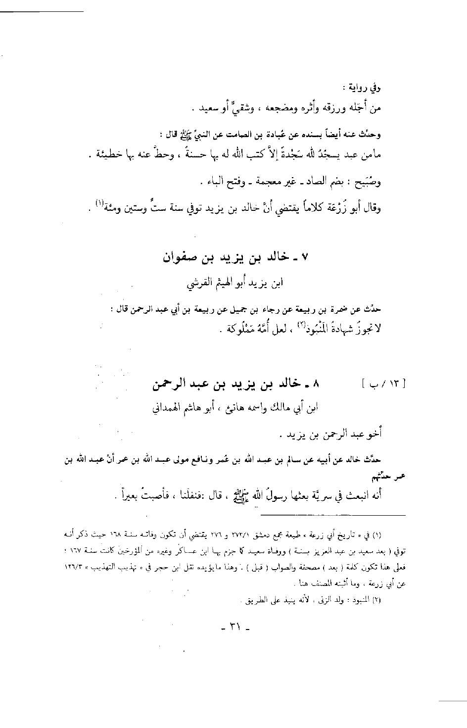 ابن أبي مالك واسمه هانئ أبو هاشم الهمداني أخو عبد الرحمن بن يزيد حدث خالد عن أبيه عن سالم بن عبد الله بن عمر ونافع مولى عبد الله بن عمر أن عبد الله بن عمر حدثهم أنه انبعث في سرية بعثها رسول الله صَلَّى اللهُ عَلَيْهِ وَسَلَّمَ، قال: فنفلنا، فأصبت بعيراً.