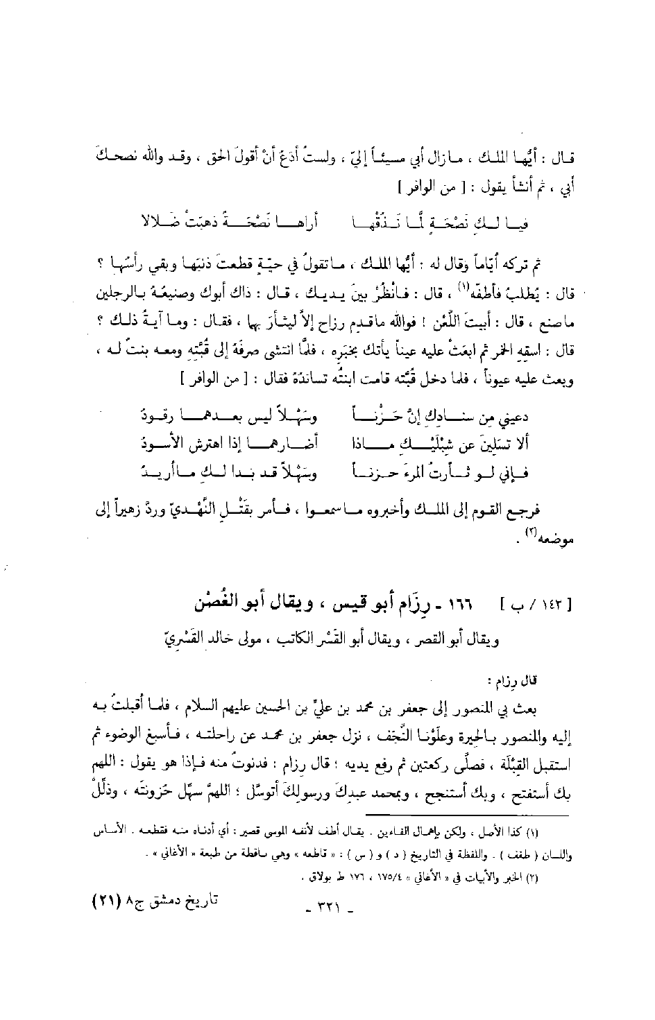 قال: أيها الملك، ما زال أبي مسيئاً إلي، ولست أدع أن أقول الحق، وقد والله نصحك أبي، ثم أنشأ يقول:
