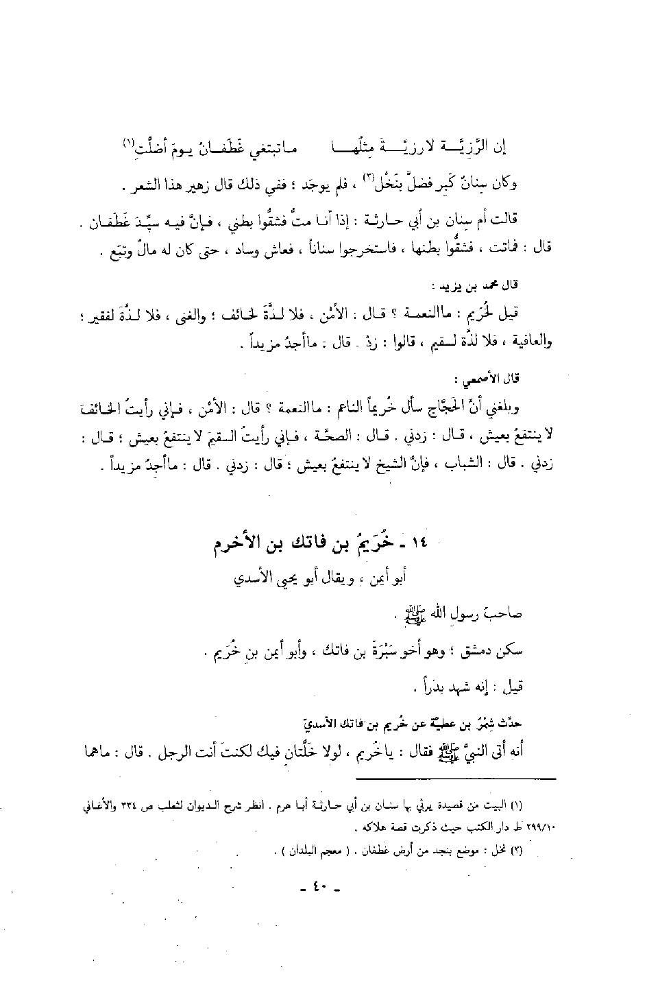 سكن دمشق؛ وهو أخو سبرة بن فاتك، وأبو أيمن بن خريم.