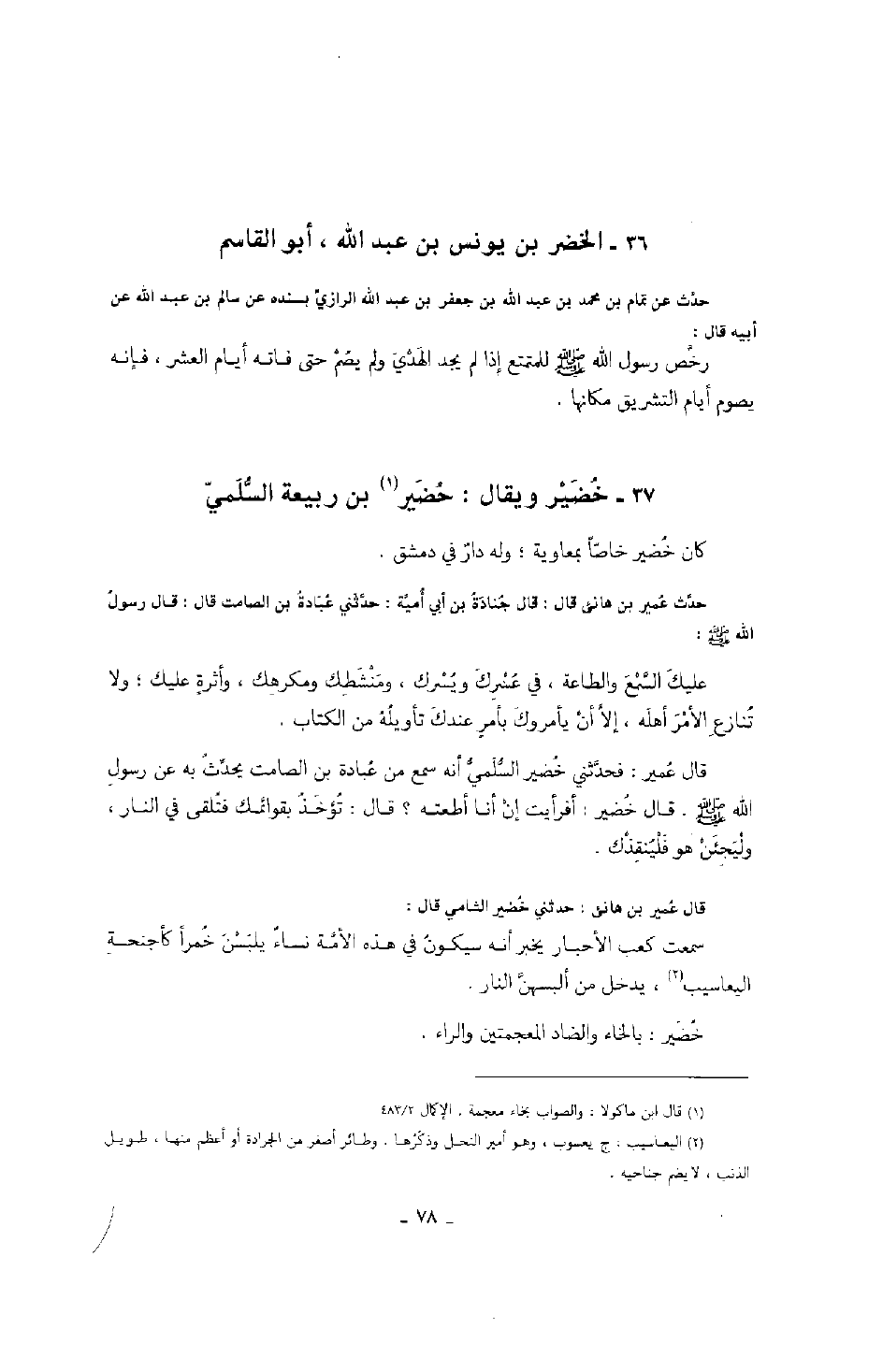 قال عمير: فحدثني خضير السلمي أنه سمع من عبادة بن الصامت يحدث به عن رسول الله صَلَّى اللهُ عَلَيْهِ وَسَلَّمَ. قال خضير: أفرأيت إن أنا أطعته؟ قال: تؤخذ بقوائمك فتلقى في النار، وليجئن هو فلينقذك.