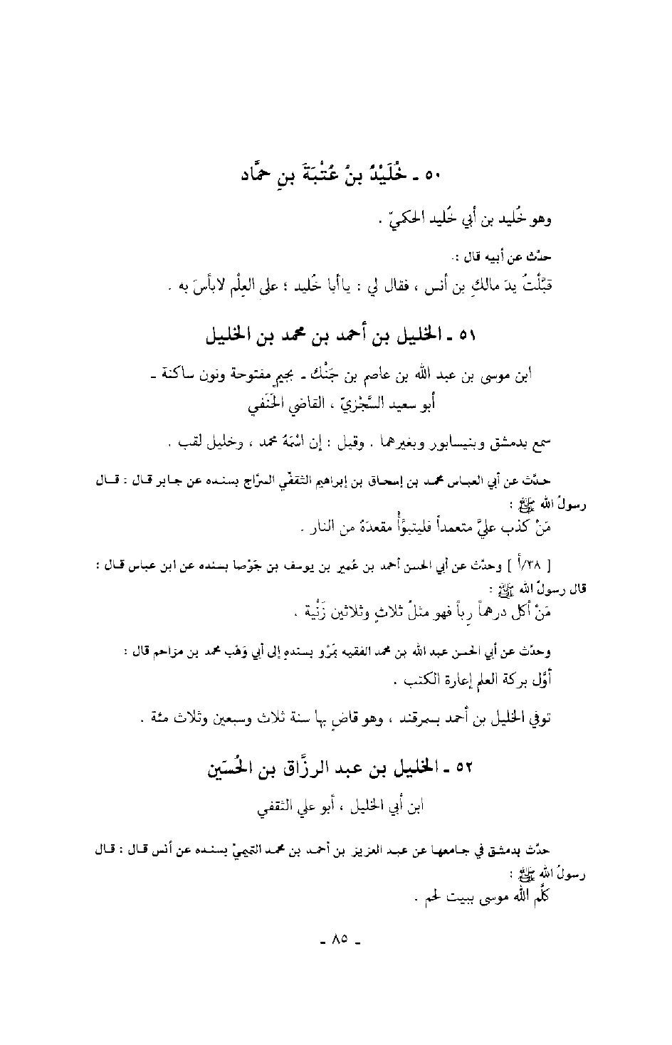 ابن أبي الخليل أبو علي الثقفي حدث بدمشق في جامعها عن عبد العزيز بن أحمد بن محمد التميمي بسنده عن أنس قال: قال رسول الله صَلَّى اللهُ عَلَيْهِ وَسَلَّمَ: " كلم الله موسى ببيت لحم.