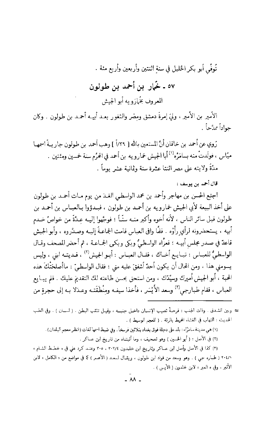 المعروف بخمارويه أبو الجيش الأمير بن الأمير، ولي إمرة دمشق ومصر والثغور بعد أبيه أحمد بن طولون. وكان جواداً ممدحاً.
