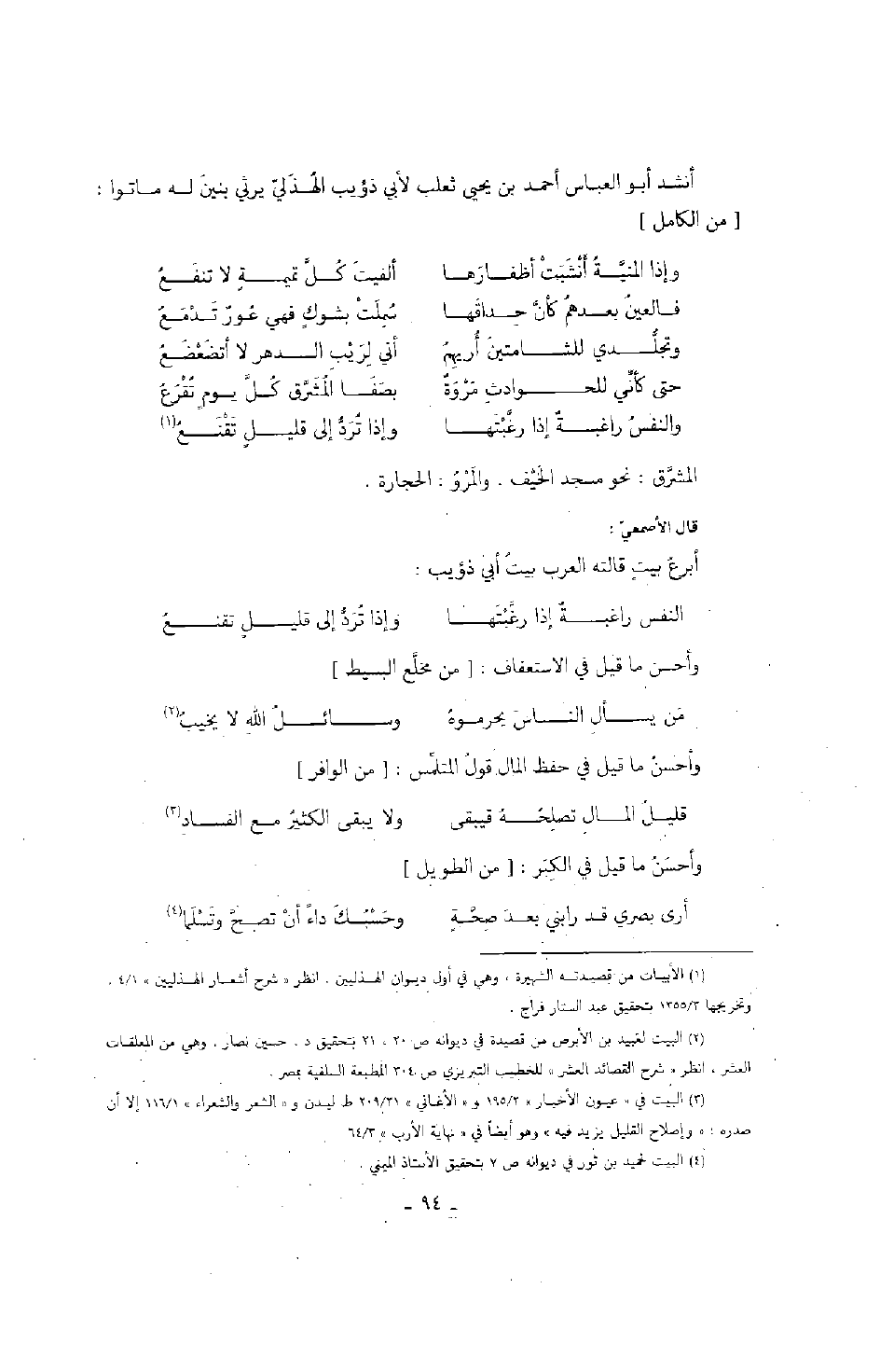 أنشد أبو العباس أحمد بن يحيى ثعلب لآبي ذؤيب الهذلي يرثي بنين له ماتوا:
