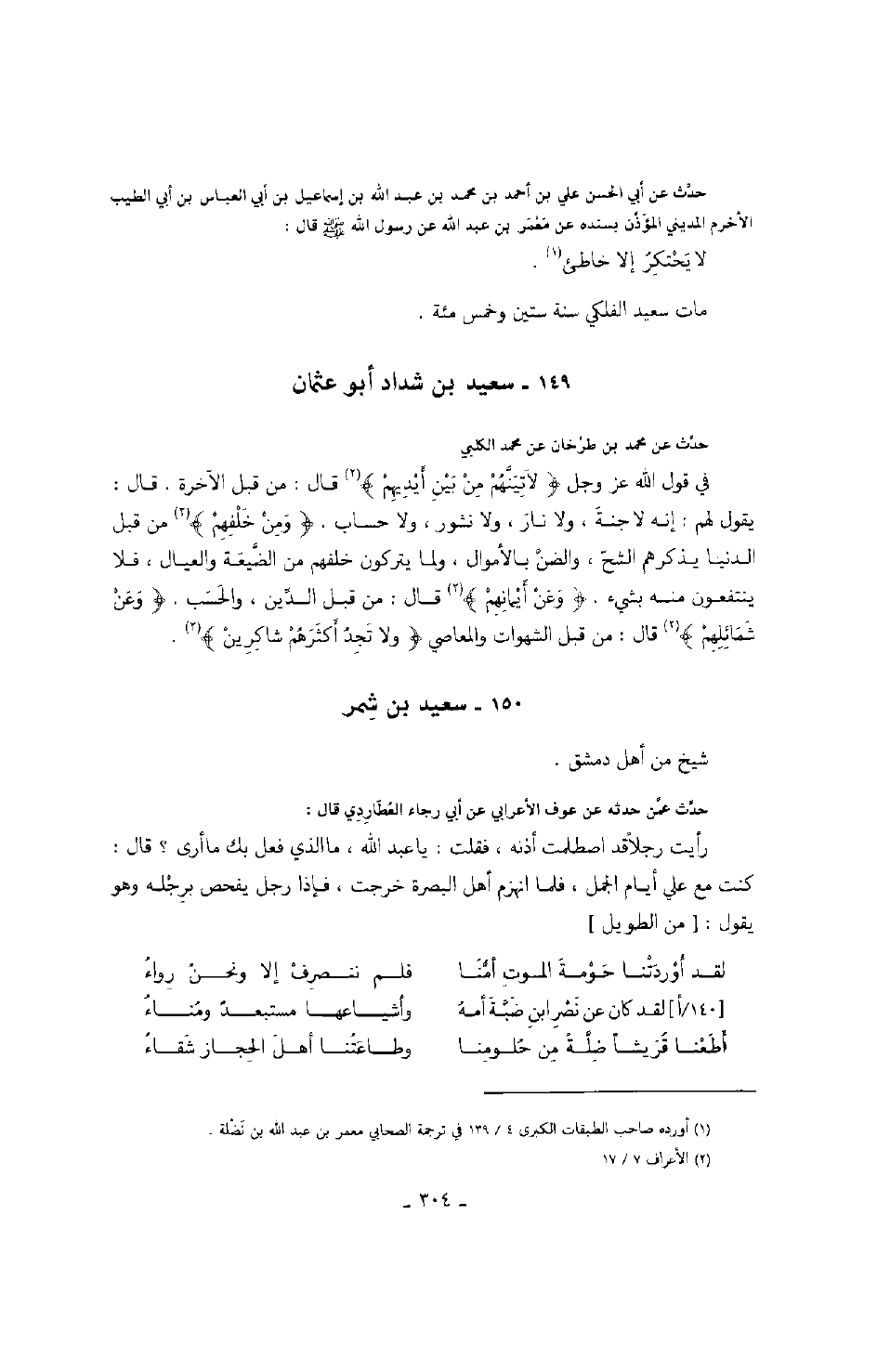 حدث عمن حدثه عن عوف الأعرابي عن أبي رجاء العطاردي قال: رأيت رجلاً قد اصطلمت أذنه، فقلت: يا عبد الله، ما الذي فعل بك ما أرى؟ قال: كنت مع علي أيام الجمل، فلما انهزم أهل البصرة خرجت، فإذا رجل يفحص برجله وهو يقول: من الطويل