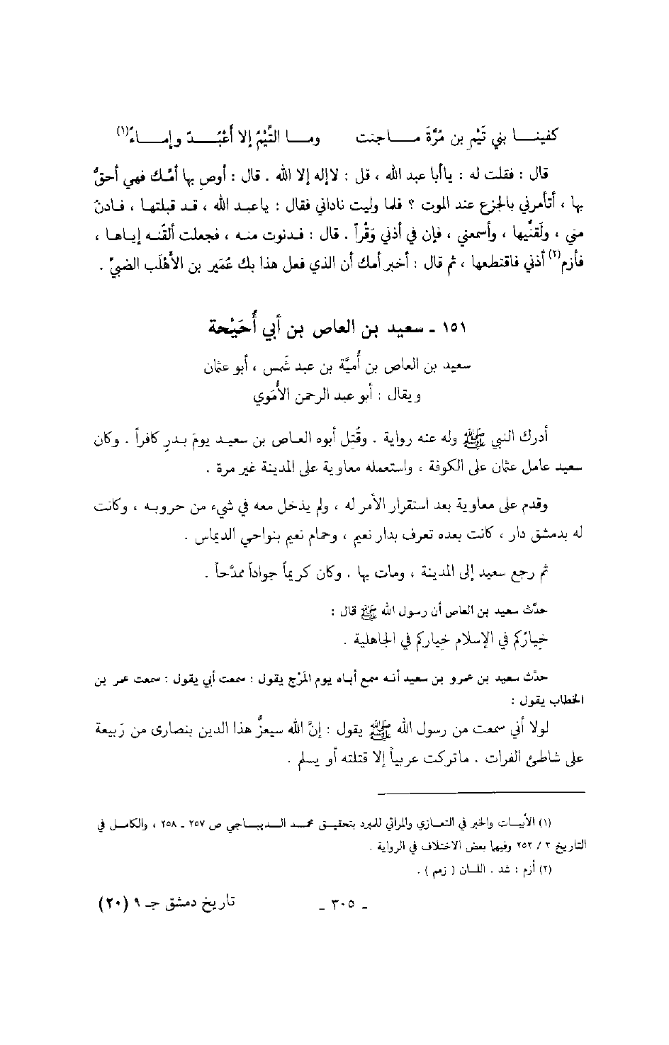 حدث سعيد بن العاص أن رسول الله صَلَّى اللهُ عَلَيْهِ وَسَلَّمَ قال: " خياركم في الإسلام خياركم في الجاهلية ".