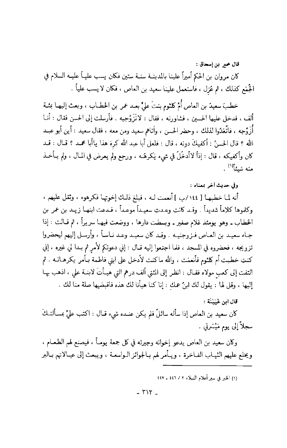 كان مروان بن الحكم أميراً علينا بالمدينة سنة ستين فكان يسب علياً عليه السلام في الجمع كذلك، ثم عزل، فاستعمل علينا سعيد بن العاص، فكان لا يسب علياً.
