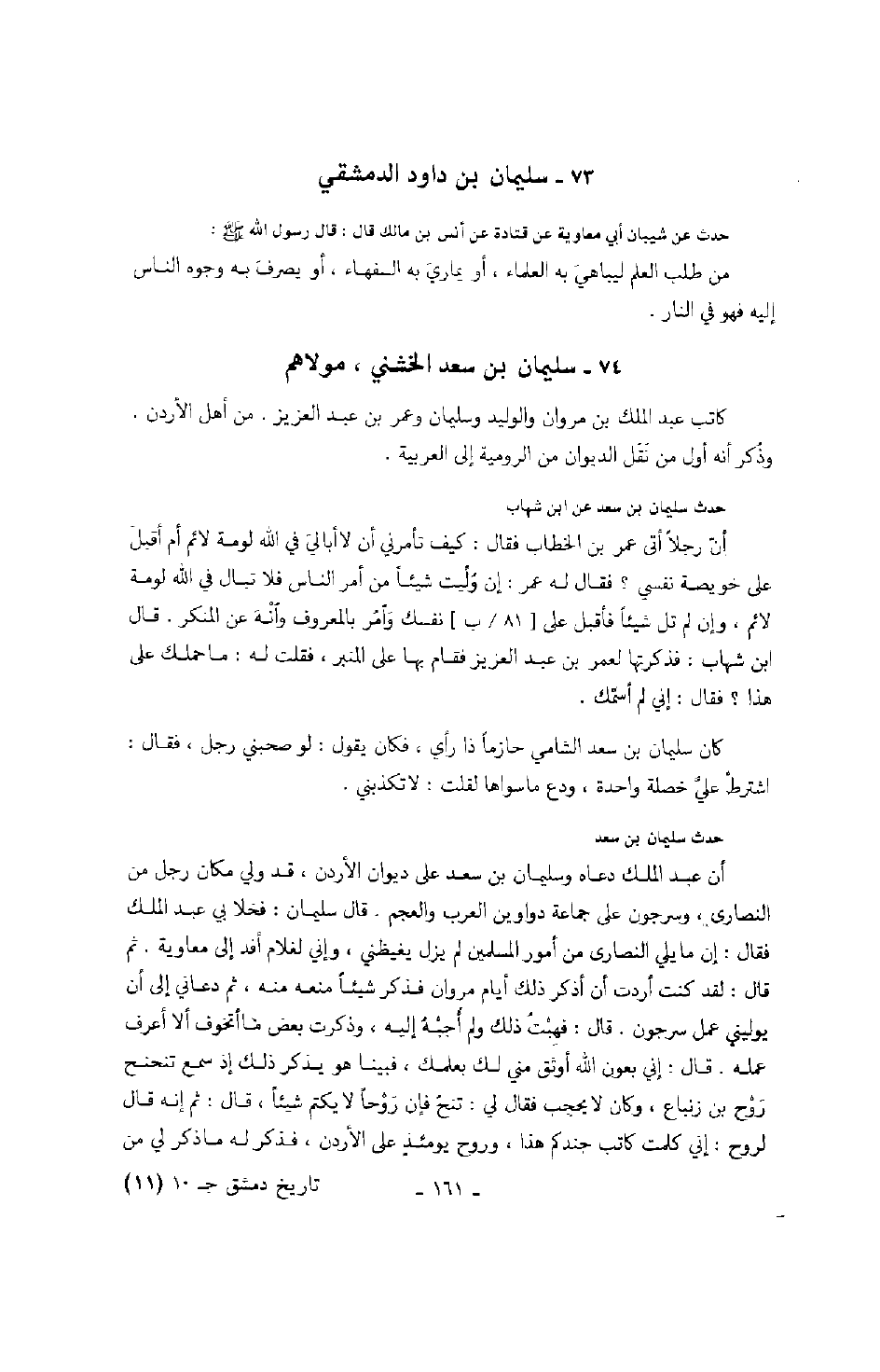 حدث شيبان أبي معاوية عن قتادة عن أنس بن مالك قال: قال رسول الله صَلَّى اللهُ عَلَيْهِ وَسَلَّمَ: من طلب العلم ليباهي به العلماء، أو يماري به السفهاء، أو يصرف به وجوه الناس إليه فهو في النار.