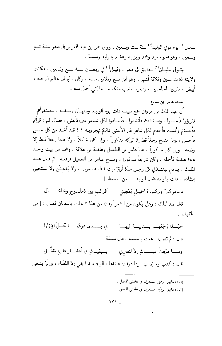 قال عبد الملك: وهل يكون من الشعر أرفث من هذا: هات يا سليمان فقال: من الخفيف