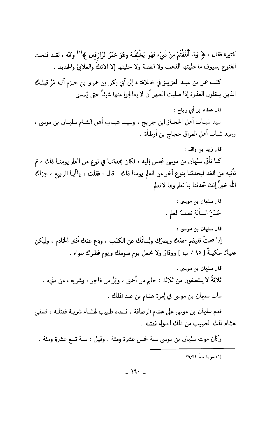 وكان موت سليمان بن موسى سنة خمس عشرة ومئة. وقيل: سنة تسع عشرة ومئة.