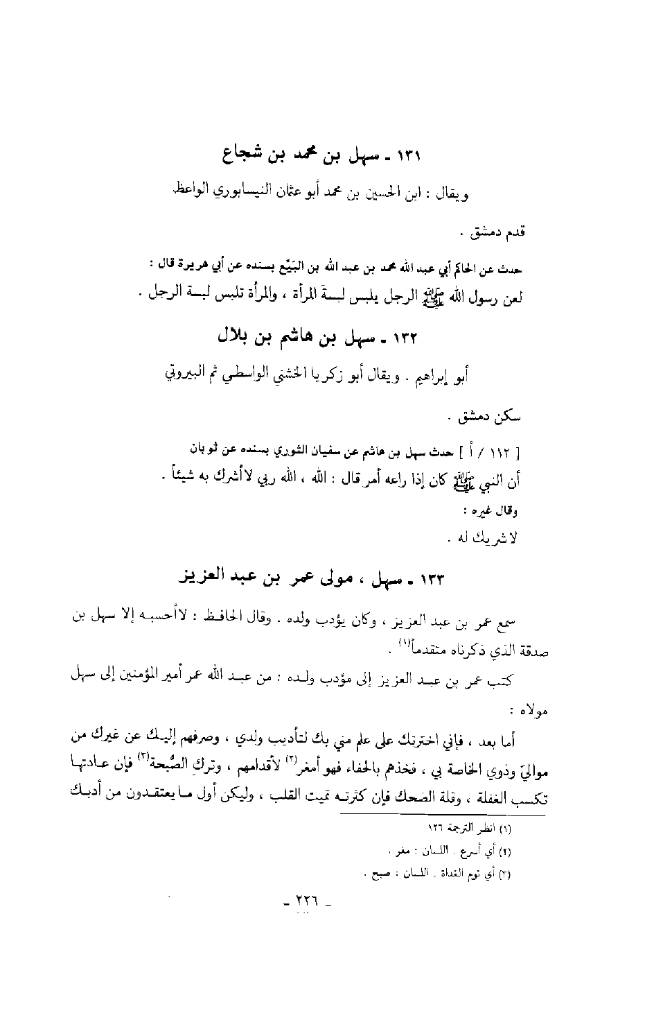 حدث عن الحاكم أبي عبد الله محمد بن عبد الله بن البيع بسنده عن أبي هريرة قال: لعن رسول الله صَلَّى اللهُ عَلَيْهِ وَسَلَّمَ الرجل يلبس لبسة المرأة، المرأة تلبس لبس الرجل.