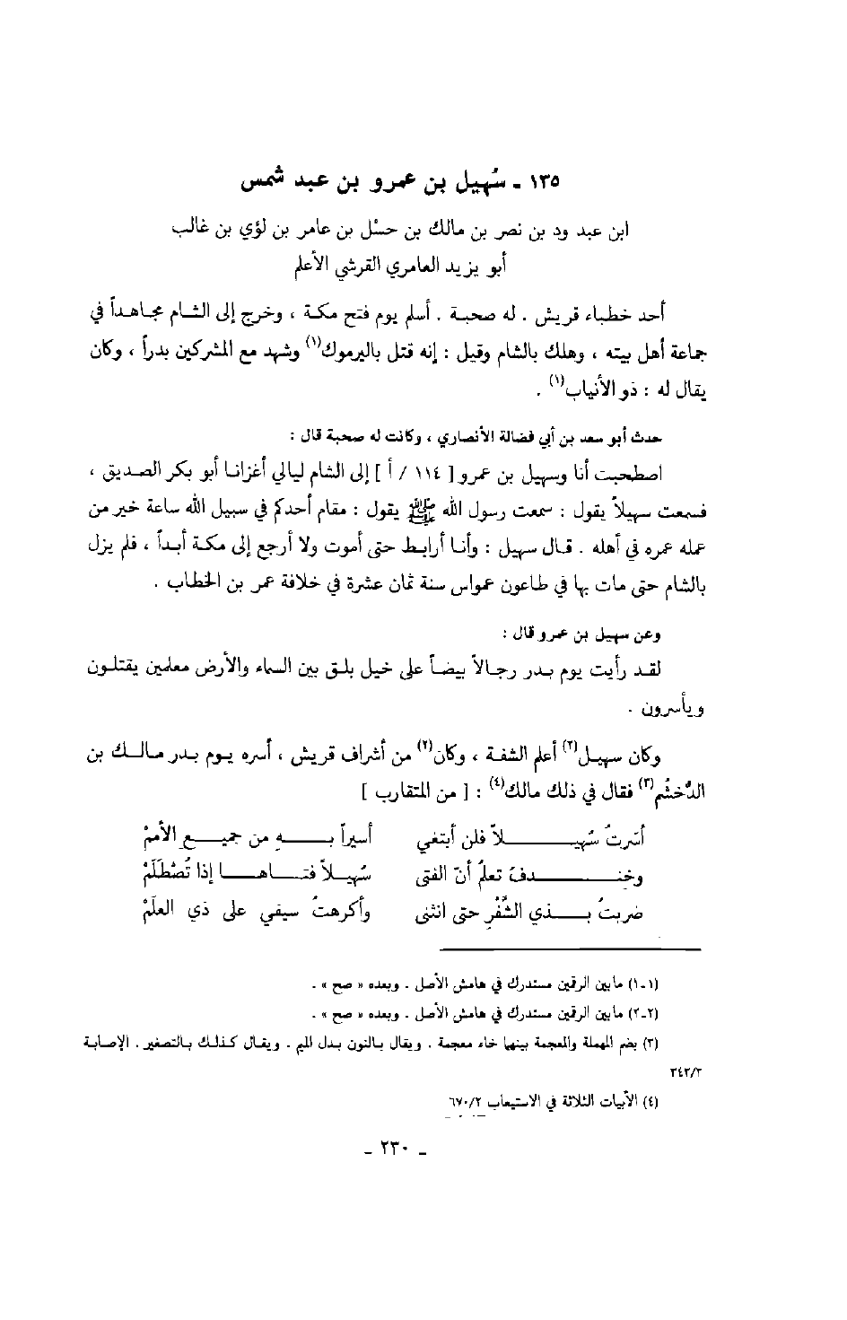 وكان سهيل أعلم الشفة، وكان من أشراف قريش، أسره يوم بدر مالك بن الدخشم فقال في ذلك مالك: من المتقارب
