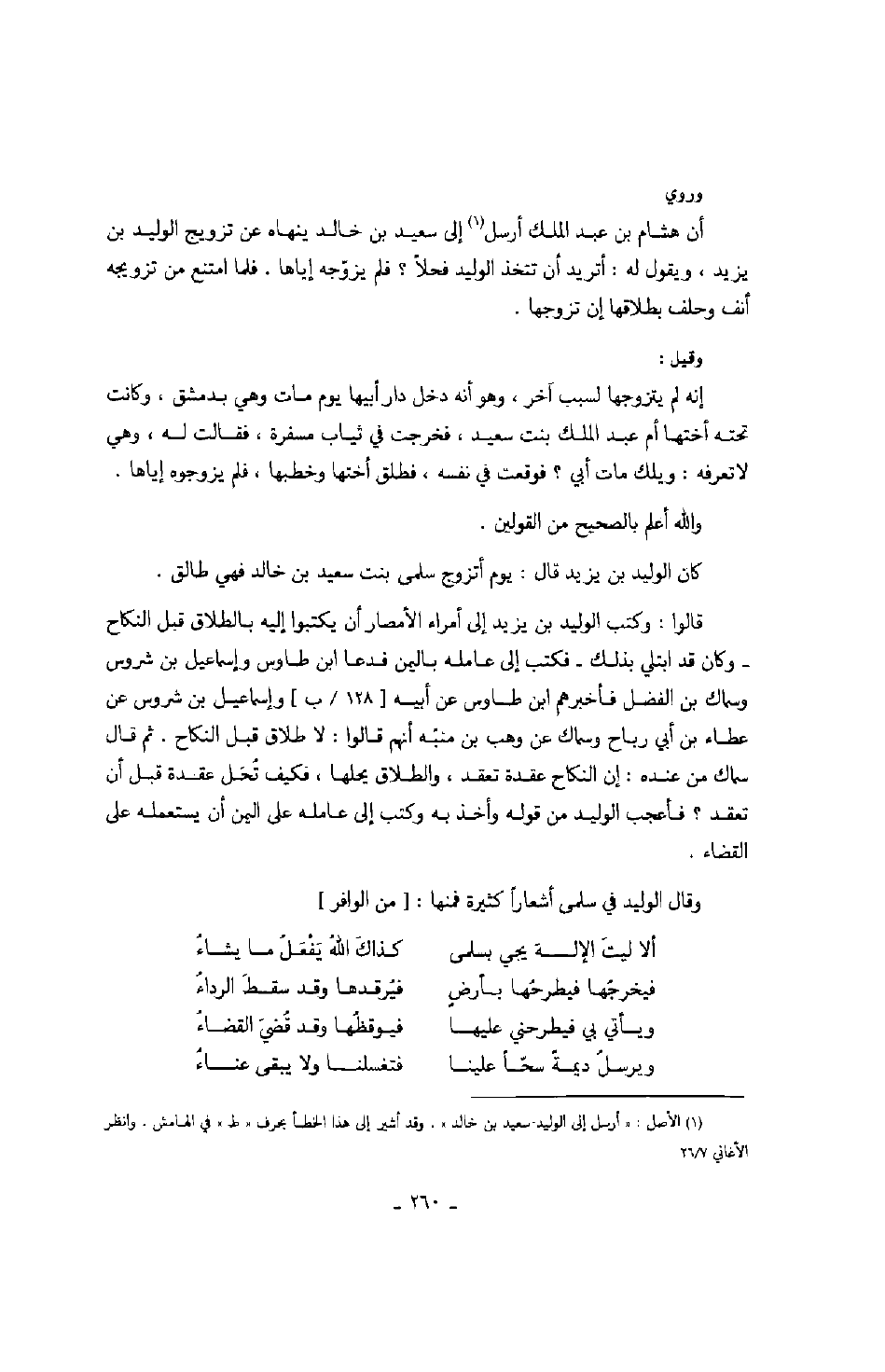 وقال الوليد في سلمى أشعاراً كثيرة فمنها: من الوافر
