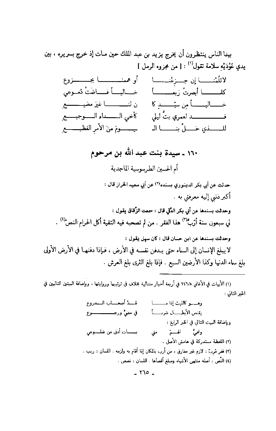 بينما الناس ينتظرون أن يخرج يزيد بن عبد الملك حين مات إذ خرج بسريره، بين يدي عوديه سلامة تقول: من مجزوء الرمل