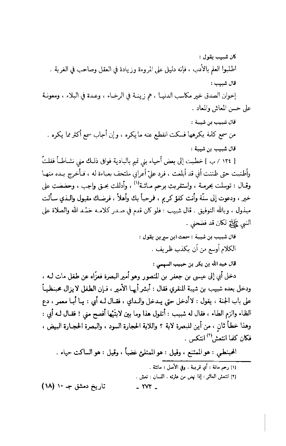 كان شبي يقول: اطلبوا العلم بالأدب، فإنه دليل على المروءة وزيادة في العقل وصاحب في الغربة.
